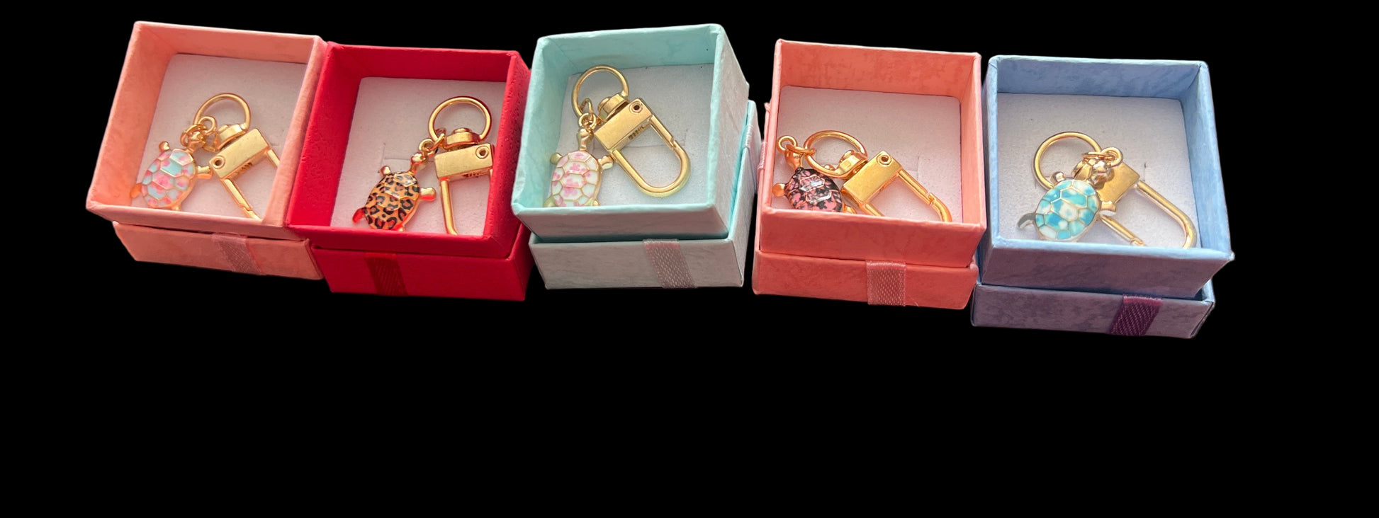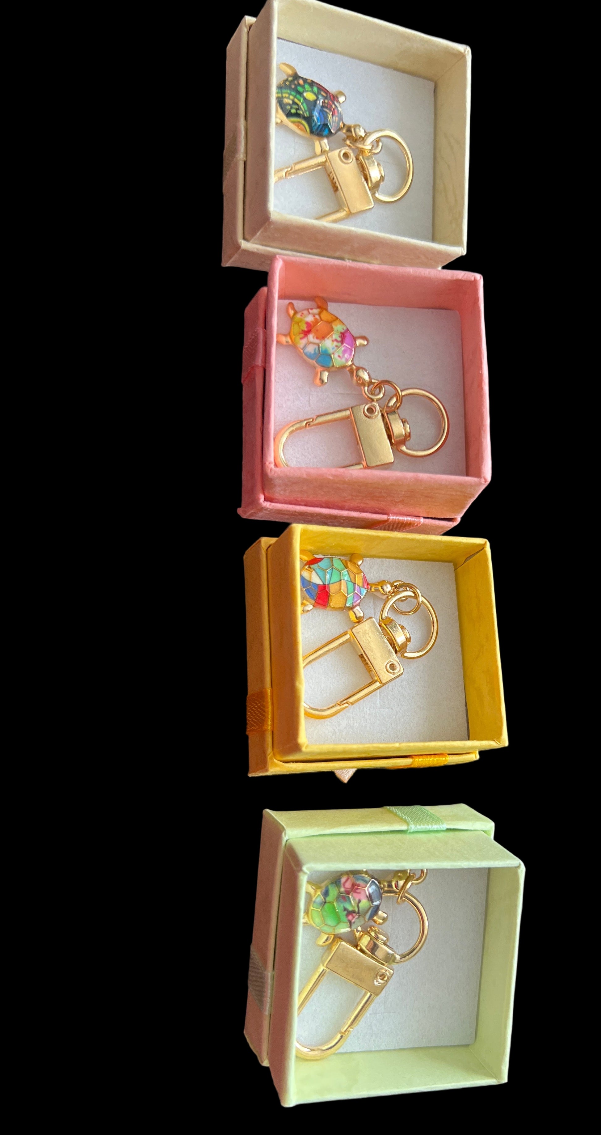 Small little cute and colorful enamel turtle keychains to be worn on your keychain or backpack or pocketbook belt hook, zippers etc. Have a little fun with these adorable creatures!